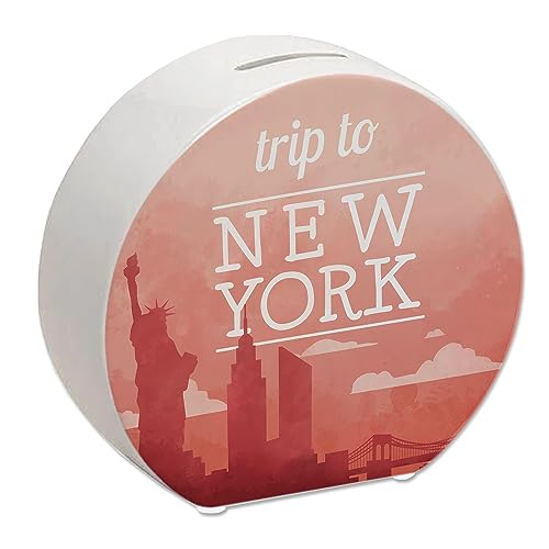 Tirelire avec un beau motif et texte – Trip to New York en rouge pour le prochain voyage en ville à New York comme cadeau pour les personnes qui aiment voyager et beaucoup autour du monde