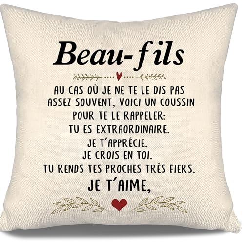 Aosumin Voici Un Coussin pour Te Le rappeler Tu ES Extraordinaire Je t’apprécie Je Crois en toi Je t’Aime Housses de Coussin pour Beau-Fils Anniversaire Noël Cadeau Rappel (Beau-Fils a)