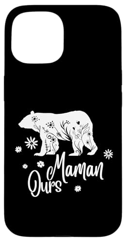 Maman Ours Amour Floral protectrice Cadeau Original Femme Coque pour iPhone 15 Plus