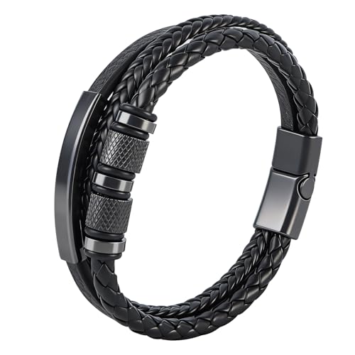 Sflyda Bracelet Homme en Cuir Bracelet Homme Personnalisé Idee Cadeau pour Papa Grand Pere Mari Copain Couple Noel Saint Valentin Fete des Peres Anniversaire