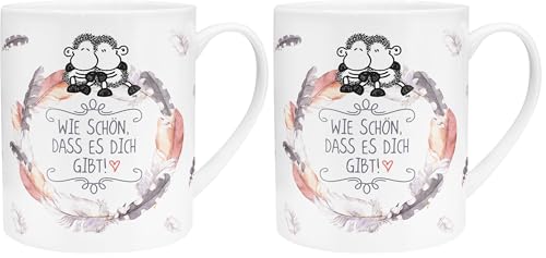 Sheepworld 45397 - Tasse XL - Motif « Belle » - Grande Tasse en Porcelaine - 60 cl - avec Inscription en Allemand - Cadeau pour Petit ami, Petite Amie (Lot de 2)