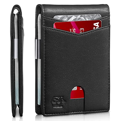 Zitahli Portefeuille Fin pour Homme - Cadeau pour Passeport - 12 Porte-Cartes - Pince à Billets - Minimaliste RFID - Fentes en Cuir - Poche Avant - Petite boîte Cadeau Fine pour Papa, Petit ami, Mari