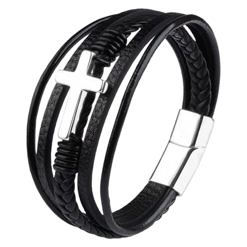 GUSXPPD Bracelet Cuir pour Hommes, Bracelets Croix, Multi Tissé Réglable Cuir Bracelet pour Les Hommes, Accessoires de Bijoux, idée Cadeau pour Mari, Petit ami, Père (Argent)