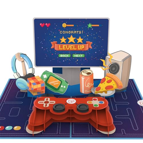 papercrush® Carte pop up « Level Up » - Carte d'anniversaire 3D amusante, Carte cadeau pour joueurs (garçons, petit ami), Bon cadeau anniversaire homme pour console de jeux et accessoires de jeu et PC