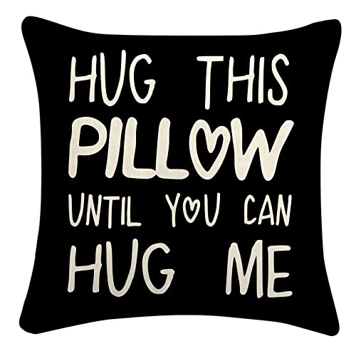 Sufamb Housse de Coussin décorative Hug This Pillow Until You Can Hug Me - 45,7 x 45,7 cm - Cadeau d'anniversaire pour Petit ami, Petite Amie, Cadeau de Relations Longue Distance, Cadeau de