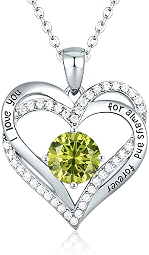 Pendentif cœur en argent sterling, collier pour femme 925 pierre rose/platine collier bijoux cadeau pour maman sa femme petite amie anniversaire anniversaire fête des mères Saint Valentin (Or blanc-08-août)