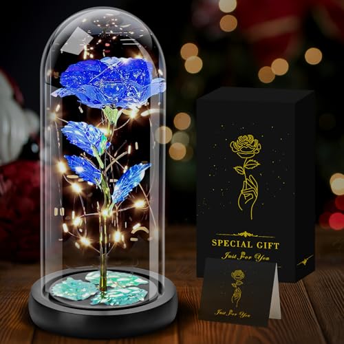 Cadeau d'anniversaire pour femme, maman, épouse, elle, rose lumineuse pour femme, rose papillon en verre, cadeau de la part de sa fille, cadeau d'anniversaire papillon pour sa maman, bleu
