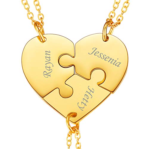 U7 Collier Coeur Soeur Plaqué Or Personnalisé Pendentifs Séparables avec Chaînes Doré 1.5mm/51cm Bijoux Cadeau Moderne pour Famille Amis Friends BFF Birthday Gift
