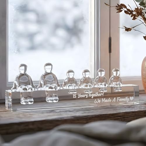 Ornalrist Cadeau de Mariage en Cristal pour 15e Anniversaire de Mariage pour sa Femme, Souvenir pour Lui, Mari 15 Ans Ensemble, Nous Avons Fait Une Famille décoration en Verre (4 Enfants)