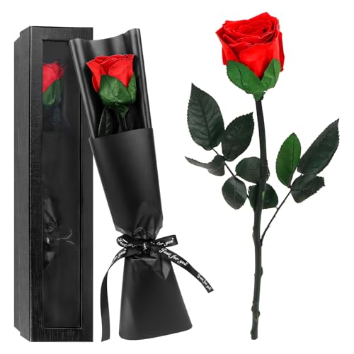 Rose Eternelle, Cadeau Saint Valentin Femme, Fleur Éternelle en Vraie Rose avec Tige, Cadeaux pour Femme, Maman, Amie, Belle-Mère ou Sœur, Fleur Préservée en Coffret Cadeau pour Un Anniversaire