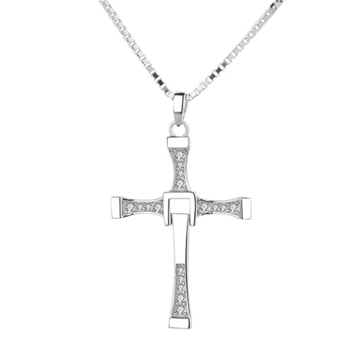 FULISONG Roix En Argent Pur Et Diamant Inspiré De Vin Diesel, Fast And Furious - Cadeau D'anniversaire Idéal Pour Un Petit Ami Ou Un Couple, Collier Boîte(50CM-SILVER CHAIN,16G(GIRLS))
