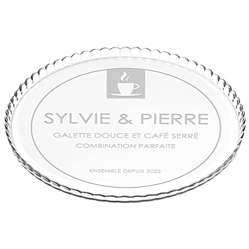 MAVERTON Plat à gâteau Rond avec Gravure - en Verre - Personnalisé - Idée Cadeau pour Un Fan de Cuisine ou pour Un Gourmand - Cadeau pour Couple - Café