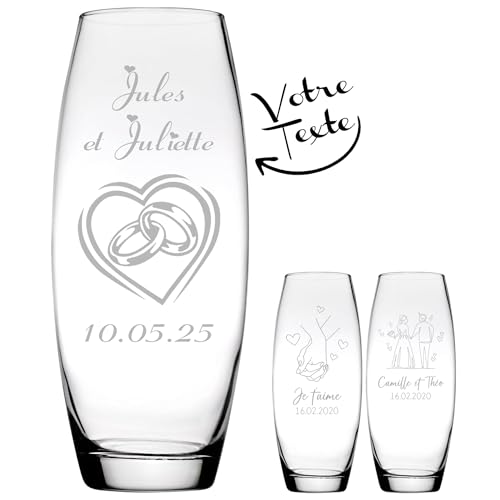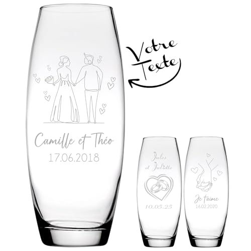 KDO MAGIC - Vase Personnalisable - Vase gravé avec Un Texte - Cadeau personnalisé - Idée Cadeau Personnalisée pour Mariage, Saint-Valentin, Couple, Amour