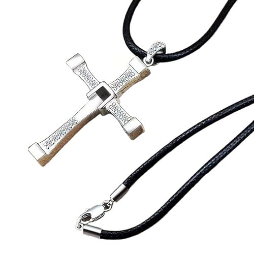 FULISONG Roix En Argent Pur Et Diamant Inspiré De Vin Diesel, Fast And Furious - Cadeau D'anniversaire Idéal Pour Un Petit Ami Ou Un Couple, Collier Boîte(Leather Cord,16G(GIRLS))