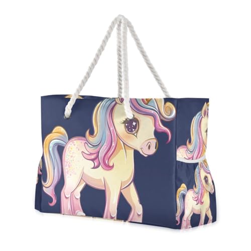 Sac fourre-tout robuste pour femme avec poches latérales - Motif licornes blanches - Cadeau idéal pour le voyage, la plage, les anniversaires