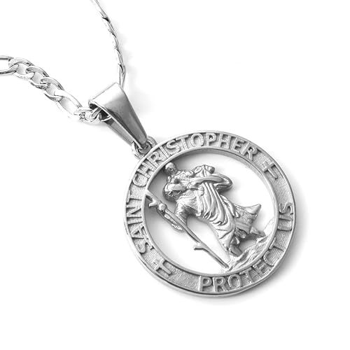 OceanJewel Collier Saint Christophe en argent pour homme, collier en acier inoxydable avec chaîne Figaro, cadeau de voyage pour petit ami, cadeau Saint Christophe Protect Us, acier inoxydable, Acier