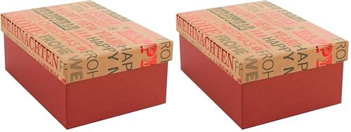 Idena 31510 - Boîte cadeau avec couvercle, dimensions 20 x 15 cm, boîte cadeau rouge pour Noël avec inscription « Frohe Weihnachten » (Joyeux Noël) et « Happy New Year » (Bonne année) (Lot de 2)
