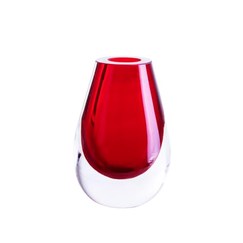 Cloudnola Teadrop Vase à Fleurs en Verre soufflé à la Bouche épais pour la Maison, Mariage, Cadeau et événements Rouge 10,9 x 15,2 cm