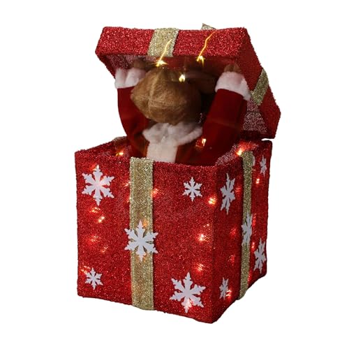 Boîte Cadeau Rouge décorative de Noël avec Musique et 50 LED Chaudes 25 x 25 x 50 cm