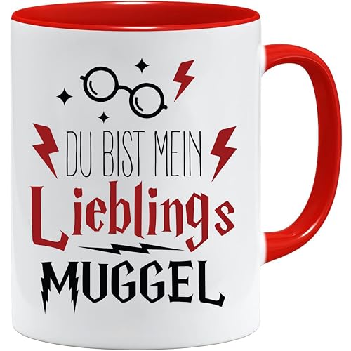 Acen Merchandise Tasse avec inscription en allemand « Du bist mein Lieblings Muggle » - Tasse à café - Idée cadeau - Tasse et coffret cadeau (rouge)