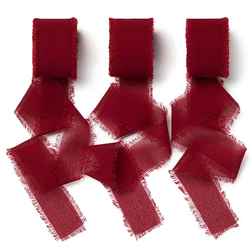 AOKSUNOVA Ruban Bordeaux 2,5 cm - Cadeau Vin Rouge Mariage - Mousseline de Soie Tissu Rouge