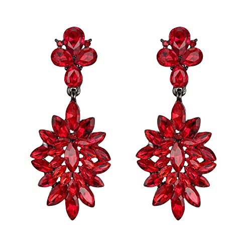 Clearine Boucles d'Oreilles Pendant Diamenté Femme Fleur de Goutte d'Eau Bijou Vintage Mariage Cristal Strass Cadeau Rouge Noir