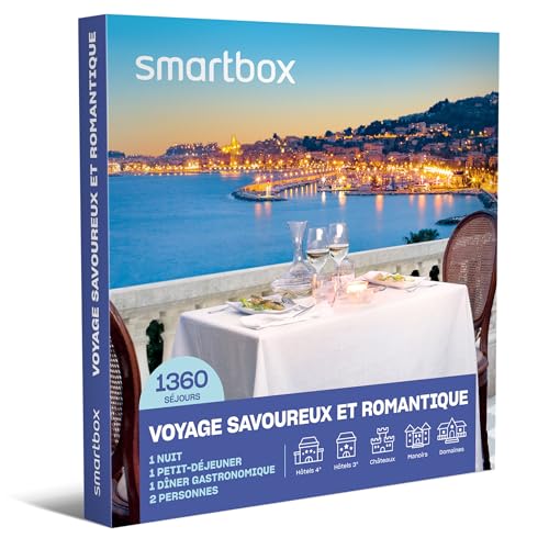 Smartbox - Coffret Cadeau Voyage Savoureux et Romantique - Idée Cadeau évasion - Une Nuit avec dîner de Chef pour 2 Personnes