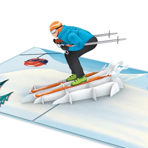 papercrush® Carte de voeux pop-up skier - Carte anniversaire drole et cadeau pour skieurs, Carte-cadeau pour homme, femme et enfants (fille et fils), Cadeau voyage surprise pour ski ou vacances de ski