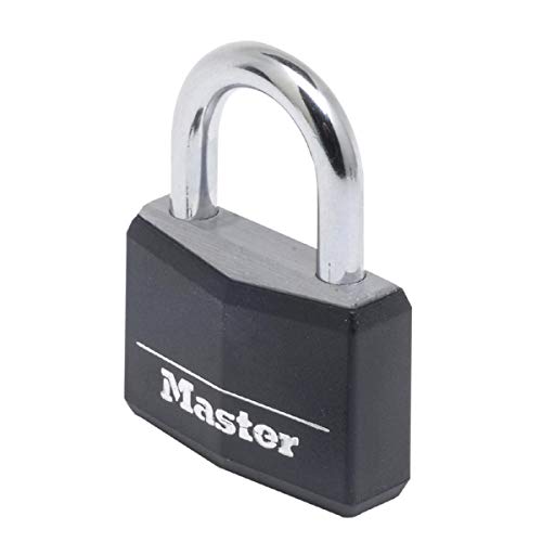 Master Lock 9150EURDBLK Cadenas à Clé en Aluminium Massif recouvert de Vinyle, noir, 5 x 6,8 x 1,4 cm