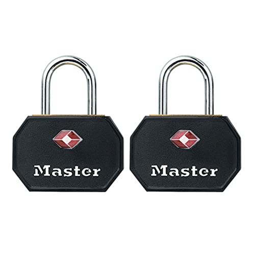 Master Lock Cadenas à clé TSA Accepted 4681TBLK - Lot de 2 cadenas pour bagages - Largeur : 3,2 cm - Noir