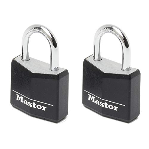Master Lock 9140EURTBLK Lot de 2 Cadenas à Clé en Aluminium Massif recouvert de Vinyle, noir, 4 x 5,9 x 1,3 cm