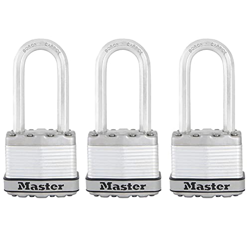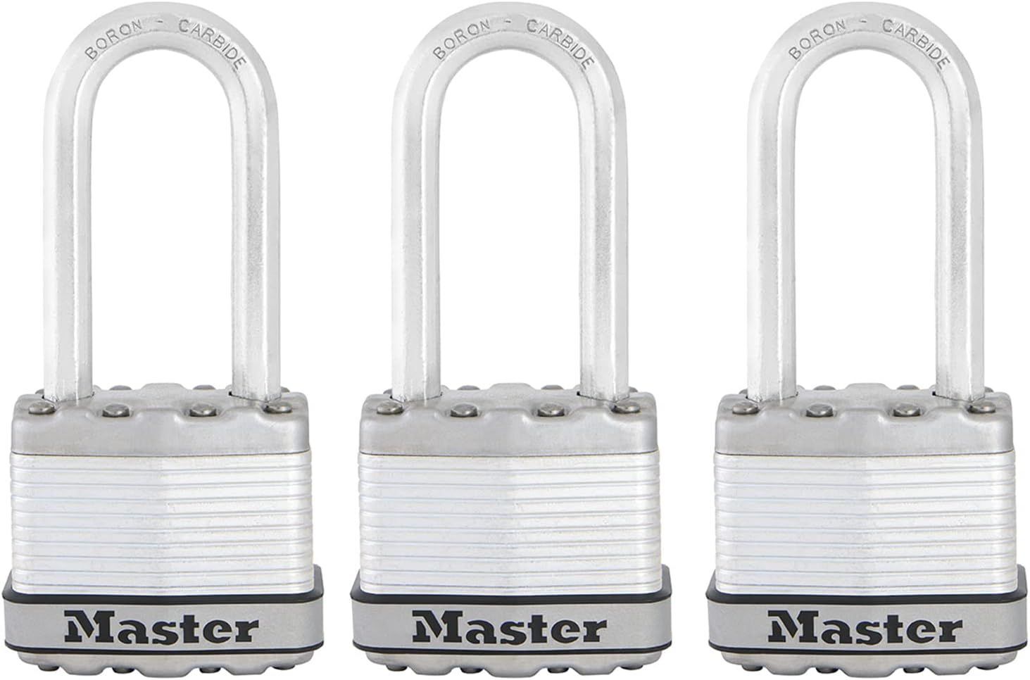 Master Lock Cadenas Haute Sécurité [A Clé] [Acier Laminé] [Extérieur] [Anse L] [Pack De 3] M1eurtrilh - Idéal Pour Les Remises, Les Garages, Les Clôtures Et Les Portails
