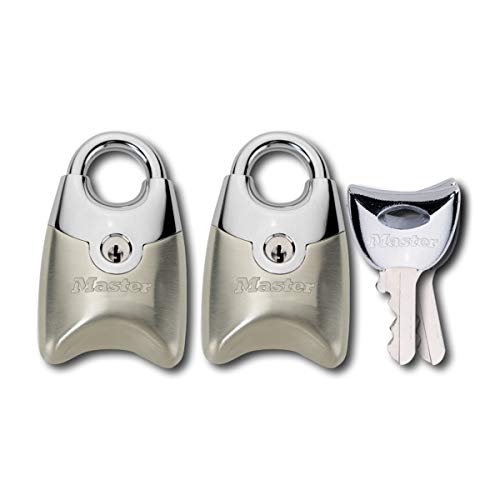 Master Lock 195EURTSN Pack de 2 Cadenas Fusion à Clé et Anse Protégée, Gris, 4,4 x 2 x 1,4