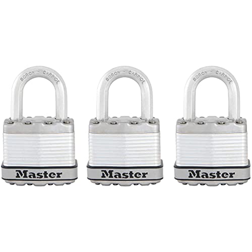 MASTER LOCK Cadenas Haute Sécurité [A Clé] [Acier Laminé] [Extérieur] [Pack de 3] M1EURTRI - Idéal pour les remises, les garages, les clôtures et les portails
