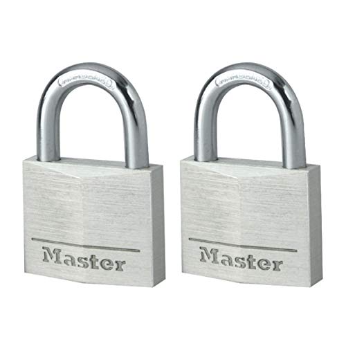Master Lock 9140EURT Lot de 2 Cadenas à Clé en Aluminium Massif, Gris, 4 x 5,9 x 1,3 cm