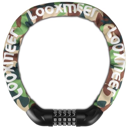 Looxmeer Chaîne Antivol Vélo Amélioré 90 cm, Chaîne Cadenas Vélo avec Fiche Épaissi, Chaîne Vélo Antivol Robuste en Alliage de Zinc, Antivol Code à 5 Chiffres pour Vélos, Motos, Scooter, Camouflage