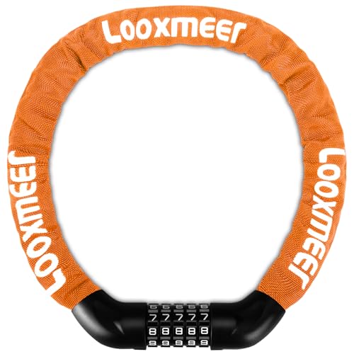 Looxmeer Chaîne Antivol Vélo Amélioré 90 cm, Chaîne Cadenas Vélo avec Fiche Épaissi, Chaîne Vélo Antivol Robuste en Alliage de Zinc, Antivol Code à 5 Chiffres pour Vélos, Motos, Scooter, Orange