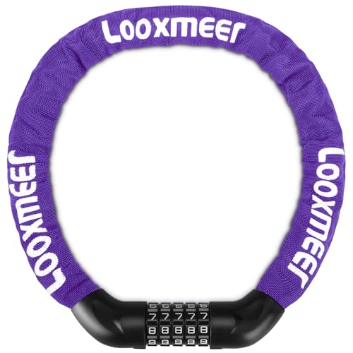 Looxmeer Chaîne Antivol Vélo Amélioré 90 cm, Chaîne Cadenas Vélo avec Fiche Épaissi, Chaîne Vélo Antivol Robuste en Alliage de Zinc, Antivol Code à 5 Chiffres pour Vélos, Motos, Scooter, Violet