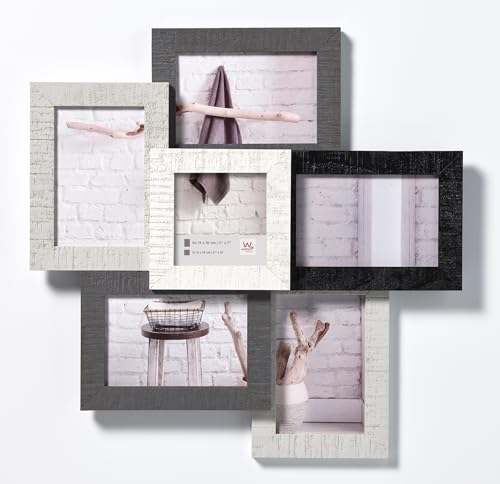 Relaxdays Cadre photos pêle-mêle 6 photos Galerie mur cadre mural 3D à suspendre 33 x 47,5 cm, blanc