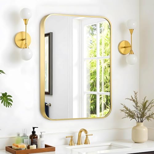 Umzodo Miroir rectangulaire Arrondi avec Cadre en métal doré brossé pour Salle de Bain, entrée, Salon, Chambre à Coucher, 61 x 91,4 cm, Vertical ou Horizontal