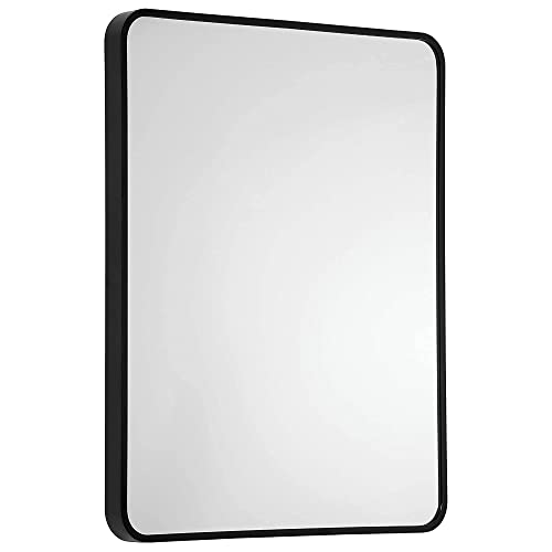 WEER Miroir de Salle de Bain Noir 55,9 x 76,2 cm, Miroir rectangulaire Arrondi pour Salle de Bain, Miroir Mural avec Cadre en métal Noir, Verre trempé, Anti-Rouille, à Suspendre horizontalement ou