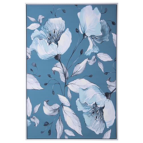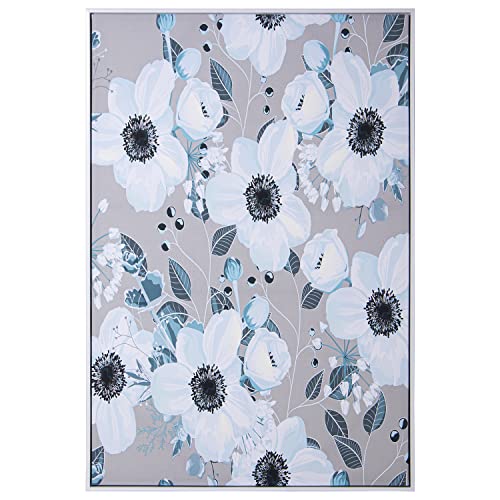 DRW Tableau rectangulaire sur toile imprimé à feuilles et fleurs avec cadre blanc 80 x 4 x 120 cm