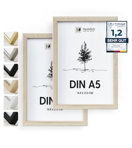 Heimlich® - Cadre photo - A5 14,8 x 21 cm, chêne - Cadres pour collages de diplômes, posters et affiches avec plastification - Montage mural ou sur table