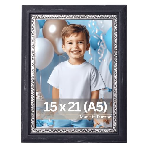 VictoR Cadre photo Boho Noir en 15x21 cm (A5) - Bordure : 30x16 mm - Cadre photo vintage décoratif rustique - Cadre photo A5 Noir