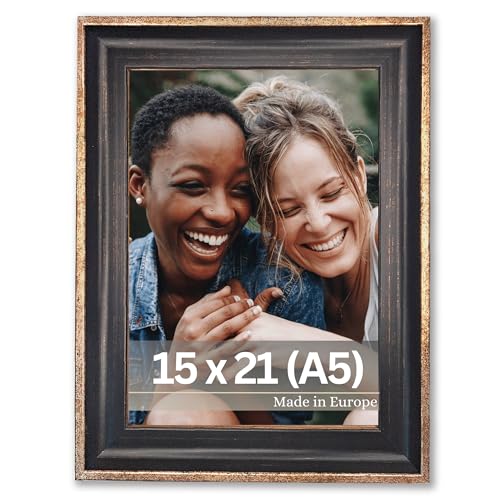 VictoR Pablo Cadre photo vintage Noir doré 15 x 21 cm (A5) – Baguette 35 x 25 mm – Verre acrylique incassable – Élégant cadre photo A5