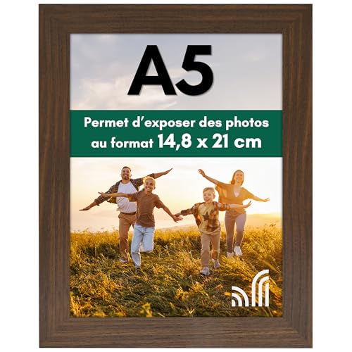 Cadre photo en MDF de style moderne - Format A3, A4, A5 - Décoration de la maison - Cadre photo autoportant et à fixer au mur - Cadre pour certificats (A5 (15 x 21 cm), noyer)