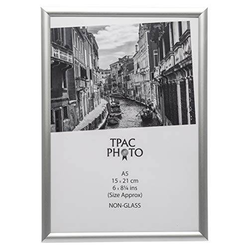 Hampton Frames | Cadre photo aluminium A5, argenté, 15x21 cm, plexiglas sécurisé | Portrait ou paysage, fixation murale ou autonome, dos clipsé | Pour photos et certificats