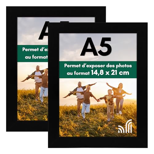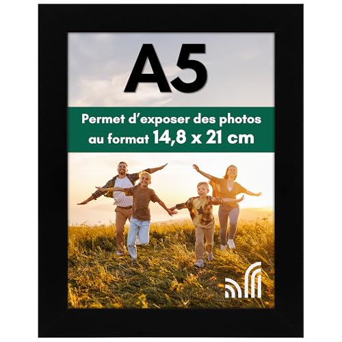 Scholar Tree Cadre A5 - Lot de 1 Cadre Noir A5, Cadres Photo Noirs 21 X 14,8 cm, Cadres Photo en Bois avec Support 6x4, Avec Support pour Pose sur Table ou Accrochage au Mur