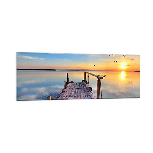 Moderne Impression sur Verre Lac nature pont oiseaux Image Tableau en Verre Decoration Murale 90x30cm Deco Cadre Salon Chambre Cuisine Panoramique Petit Tableaux Decoratifs Muraux Art GAB90x30-2402