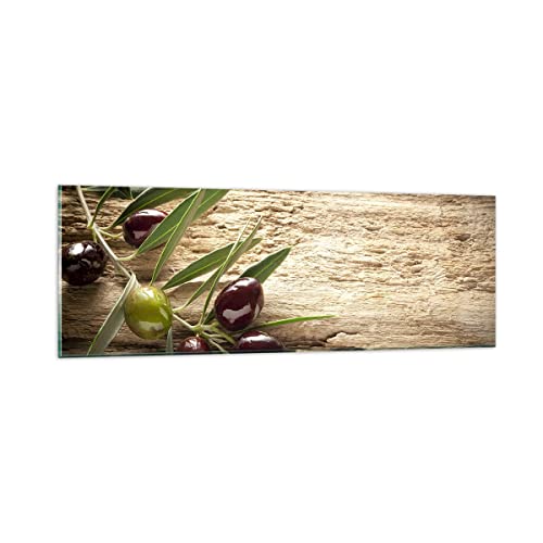 Moderne Impression sur Verre Olive italie arôme régime Image Tableau en Verre Decoration Murale 90x30cm Deco Cadre Salon Chambre Cuisine Panoramique Petit Tableaux Decoratifs Muraux Art GAB90x30-2420